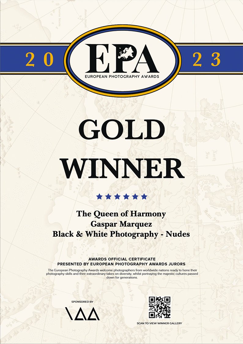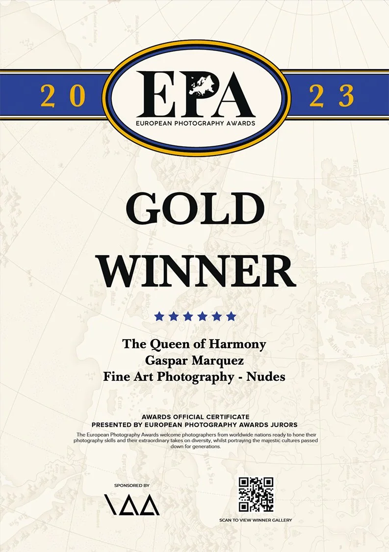I am a Double Gold award winning photographer by Muse Photography Awards 2023 in the Catergories of Black & White Photography Nudes and Fine Art Photography Nudes for my series called '“ The Queen of Harmony”